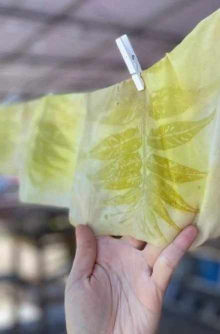 Top: Foraged and Eco-Printed Tree of Paradise